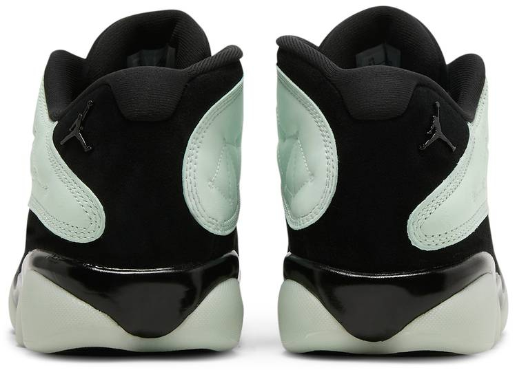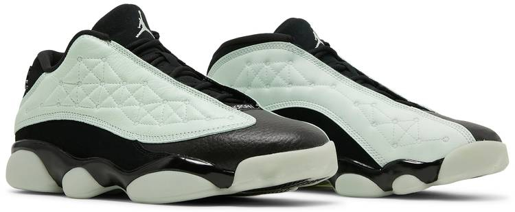 The 13 Retro Low ‘Singles Day celebrates the commercial holiday with a unique build: the upper features a black tumbled leather vamp . black synthetic suede paneling . and pale green leather overlays enlivened with geometric stitch detailing. The latter component features a glow-in-the-dark finish on the medial side . while the luminescent properties on the opposite side are limited to vertically printed that reads ‘Air 0023 and 111 Low. Matching green accents make their way to the embroidered Jumpman atop the tongue and the 13’s signature panther paw outsole . similarly updated with a glow-in-the-dark treatment.