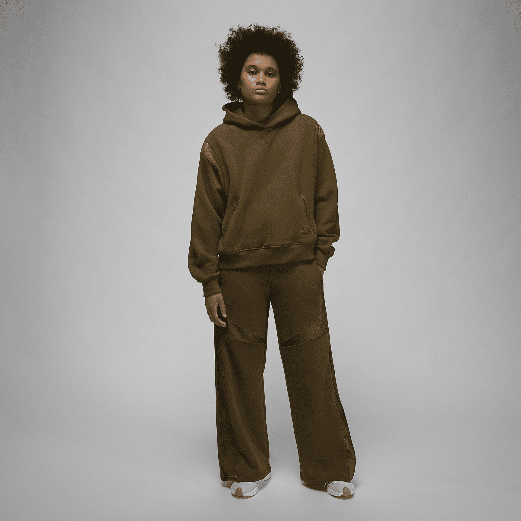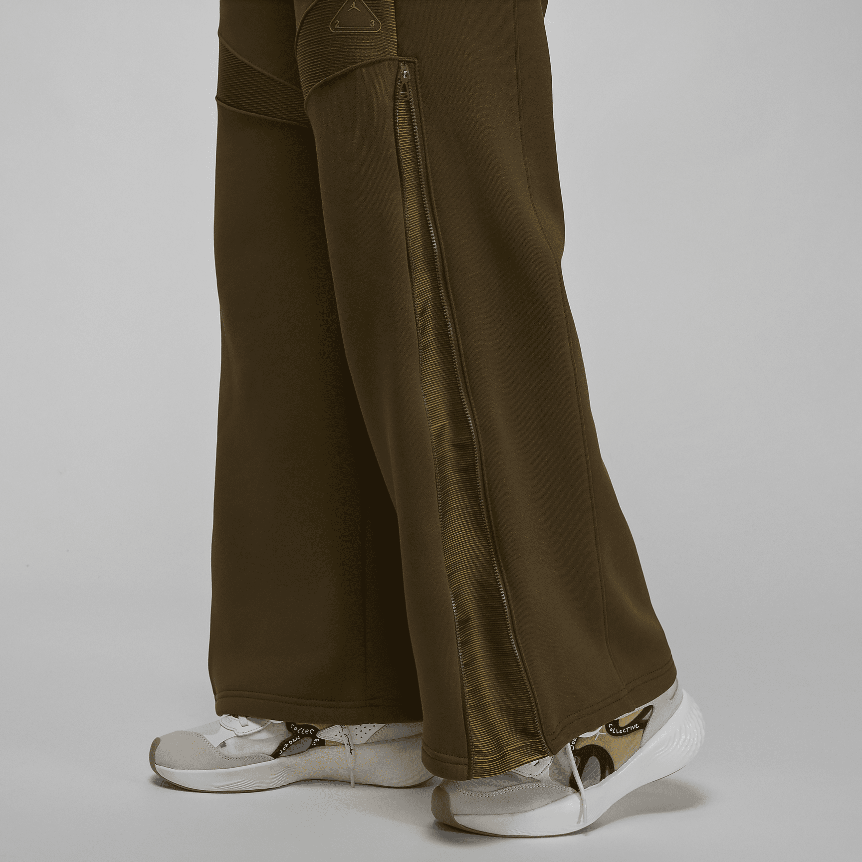 Add warmth and edge to your look with these high-waisted fleece pants with futuristic textured panels. Want to mix it up? Unzip the sides to reveal extra material in a matching pattern.