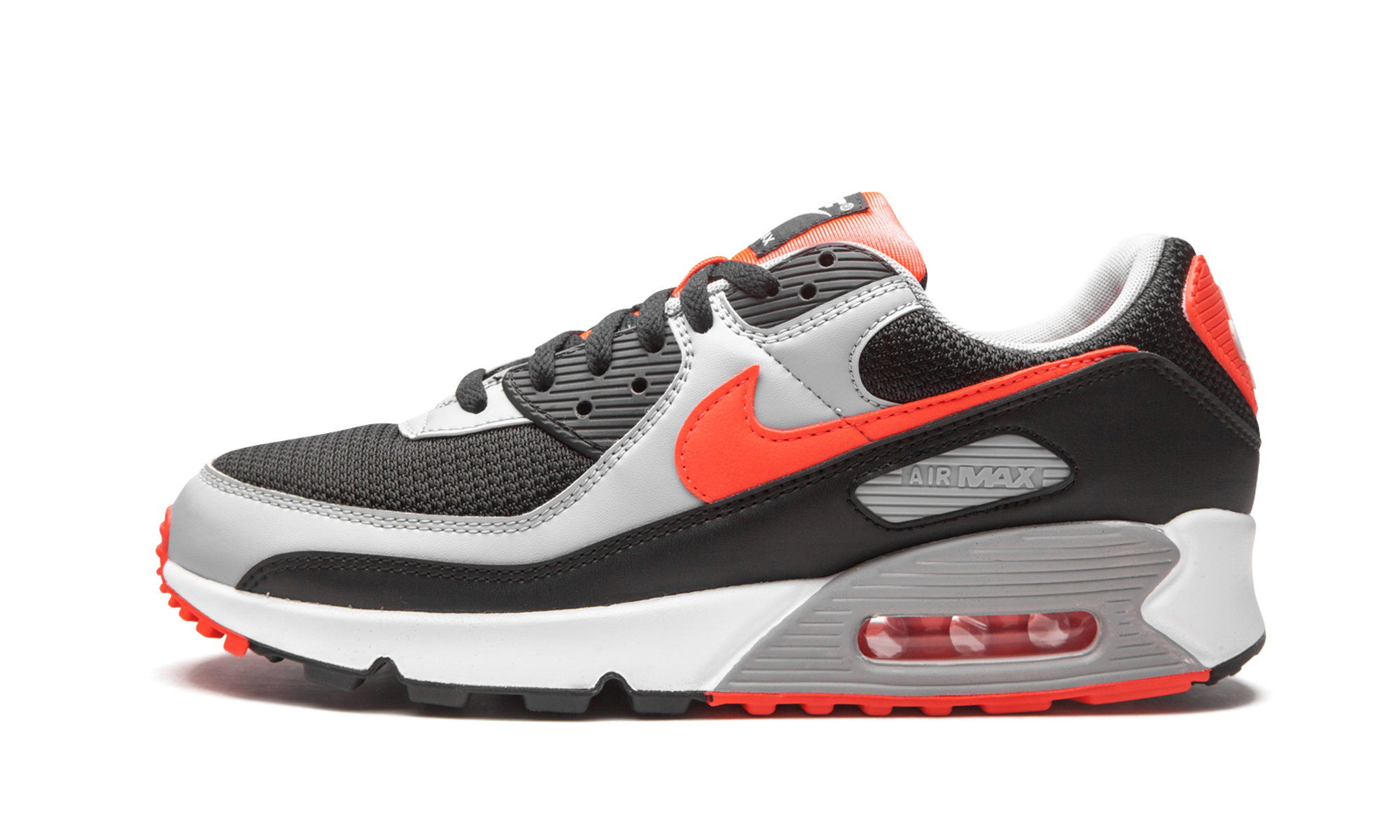 The Nike Air Max 90 “Radiant Red” is a rugged look for the retro runner that celebrated its 30-year anniversary in 2020. The Air Max 90 is one of the most desirable Air Max models in Nike’s diverse Air Max collection, loved for its always-in-style looks and dependable comfort. The “Radiant Red” features black mesh detailing on the toe and collar. The mid-panel, toe, and collar are dressed in contrasting Wolf Grey leather. A Radiant Red leather Swoosh logo appears on both sides and a black synthetic leather mudguard is found above the white midsole. The heel tab with black “Nike Air” branding and the tongue with a black “Nike Air” branding patch are both dressed in the fiery Radiant Red hue. A grey Air Max branding window and black eyelets add to the retro aesthetic. Beneath the upper, a visible Air unit appears in the heel of the white foam midsole. Release date: November 9, 2020. Radiant Red