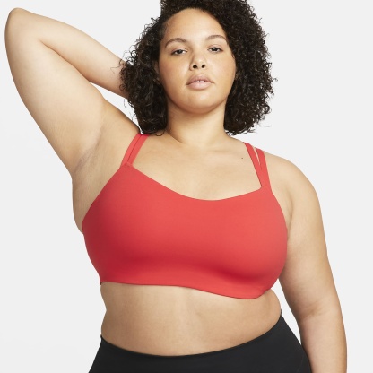 Feel confident all day long in this light-support Alate bra. A sewn-in 1-piece pad offers enhanced coverage and shaping while sweat-wicking technology keeps you cool and comfortable. The InfinaSoft fabric of the body and straps feels like you’re being hugged by a silky cloud and stretches easily, giving you the ultimate freedom of movement. A rounded V-neck tops the bra off with a clean finish, so you might just forget you're wearing it.
