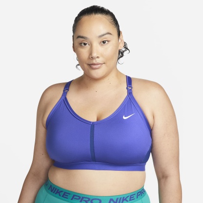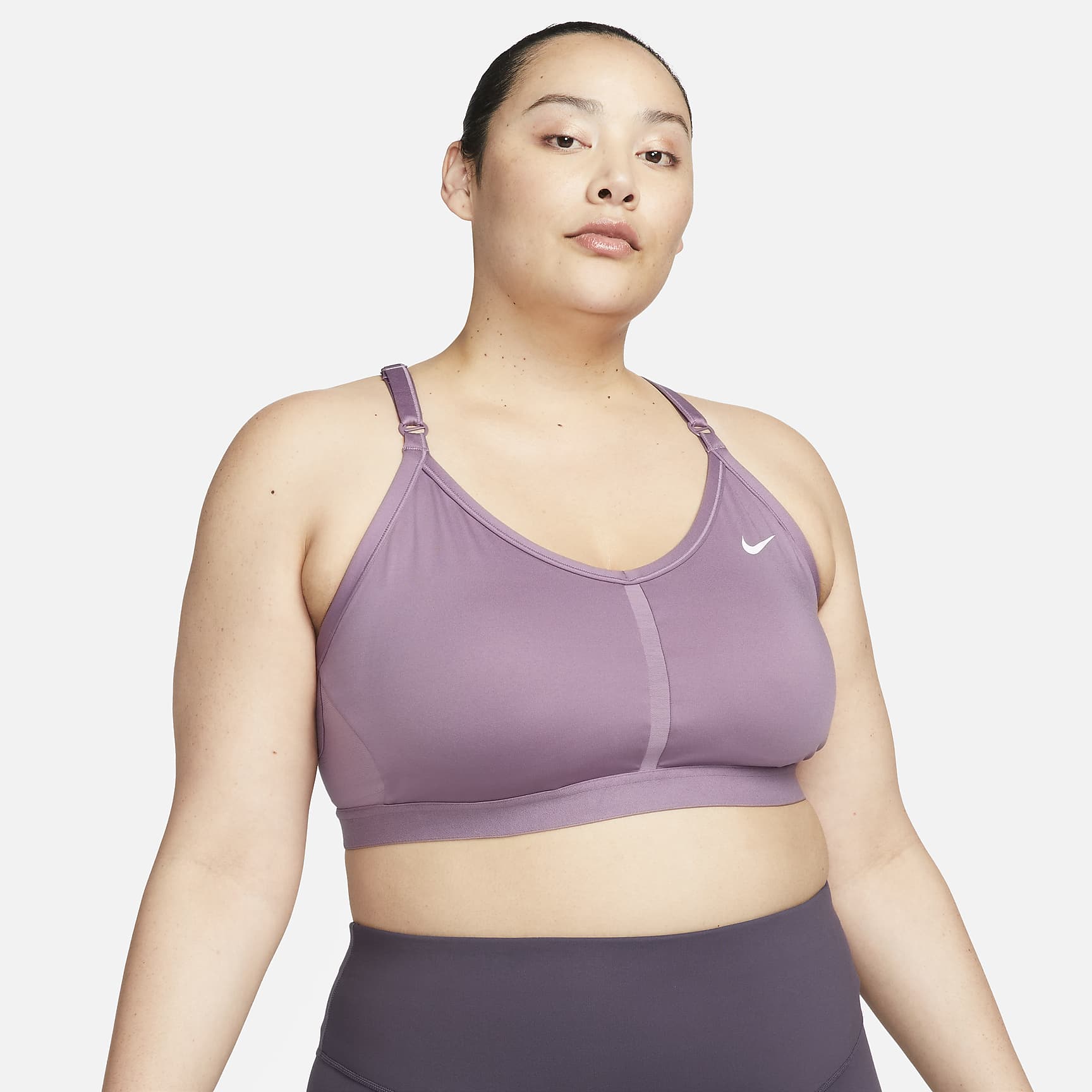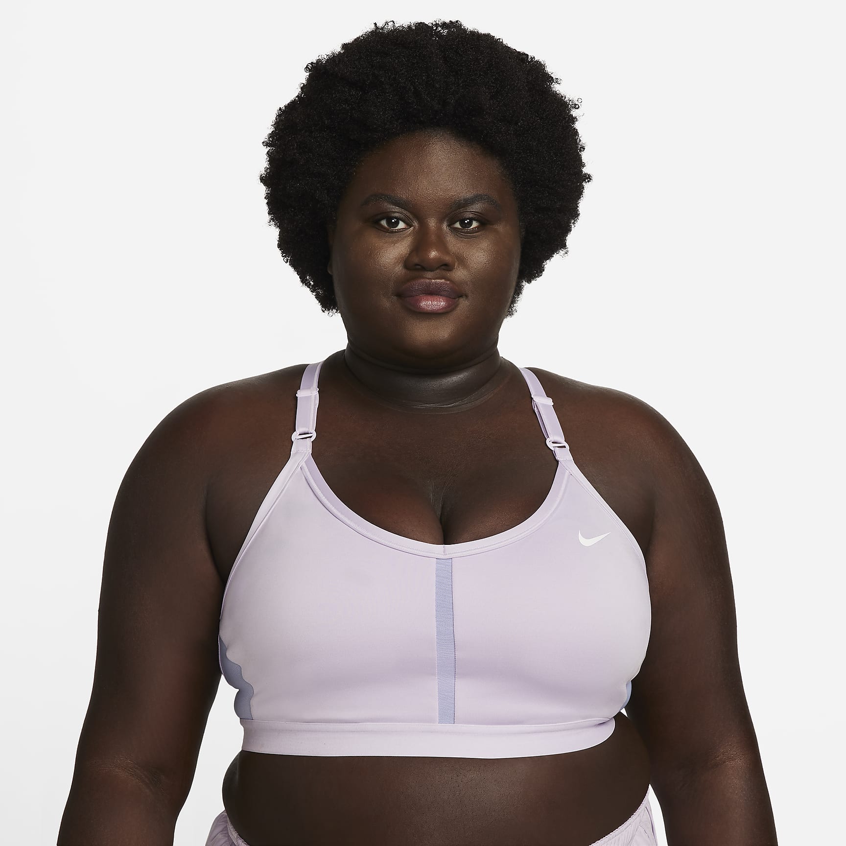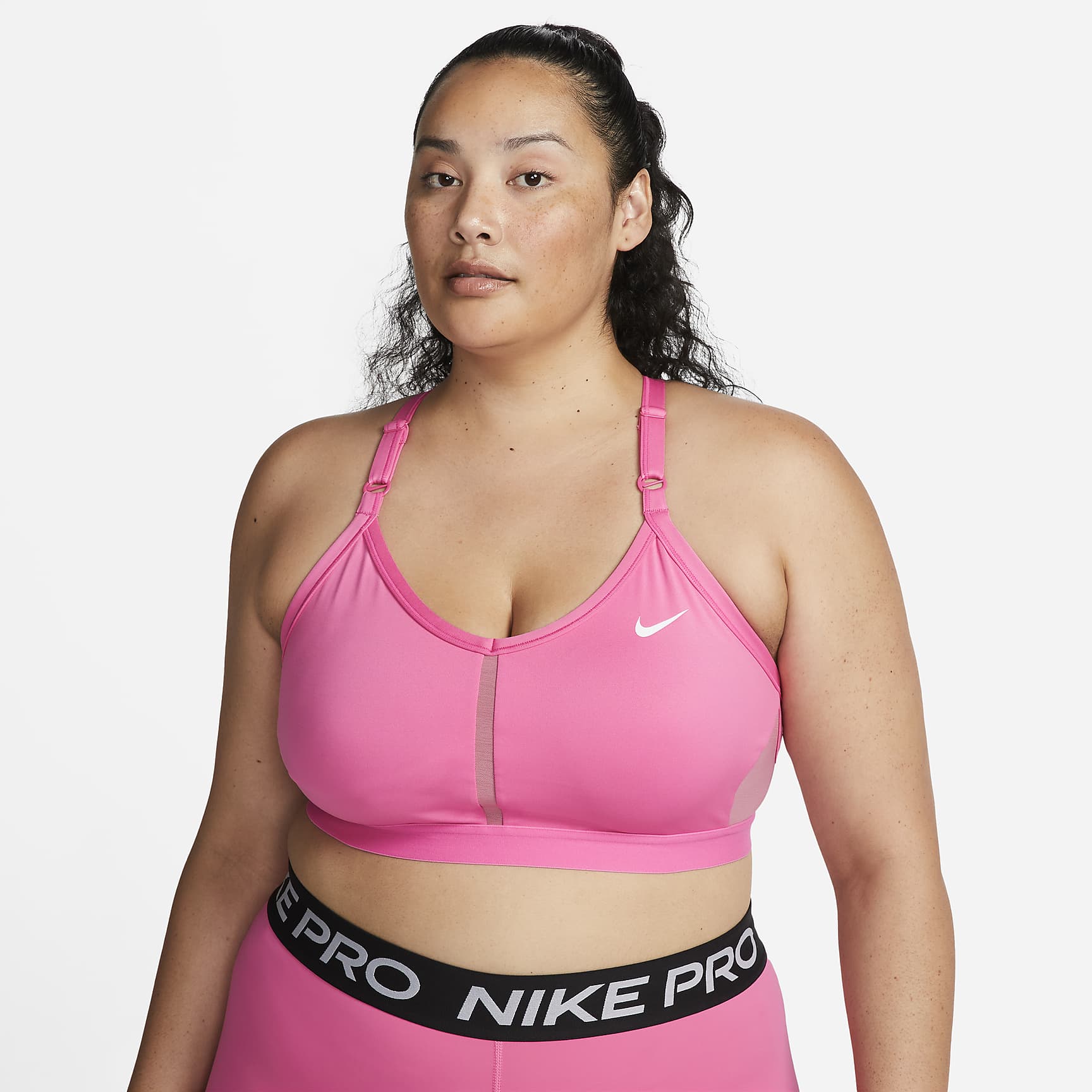 The Dri-FIT Indy Sports Bra makes simple support even easier with straps that adjust in the front. Soft fabric is designed for breathability on the front and back in case you work up a sweat. With easily removable pads that slip in from the top, it's effortlessly comfortable. This product is made with at least 50% recycled polyester fibers.
