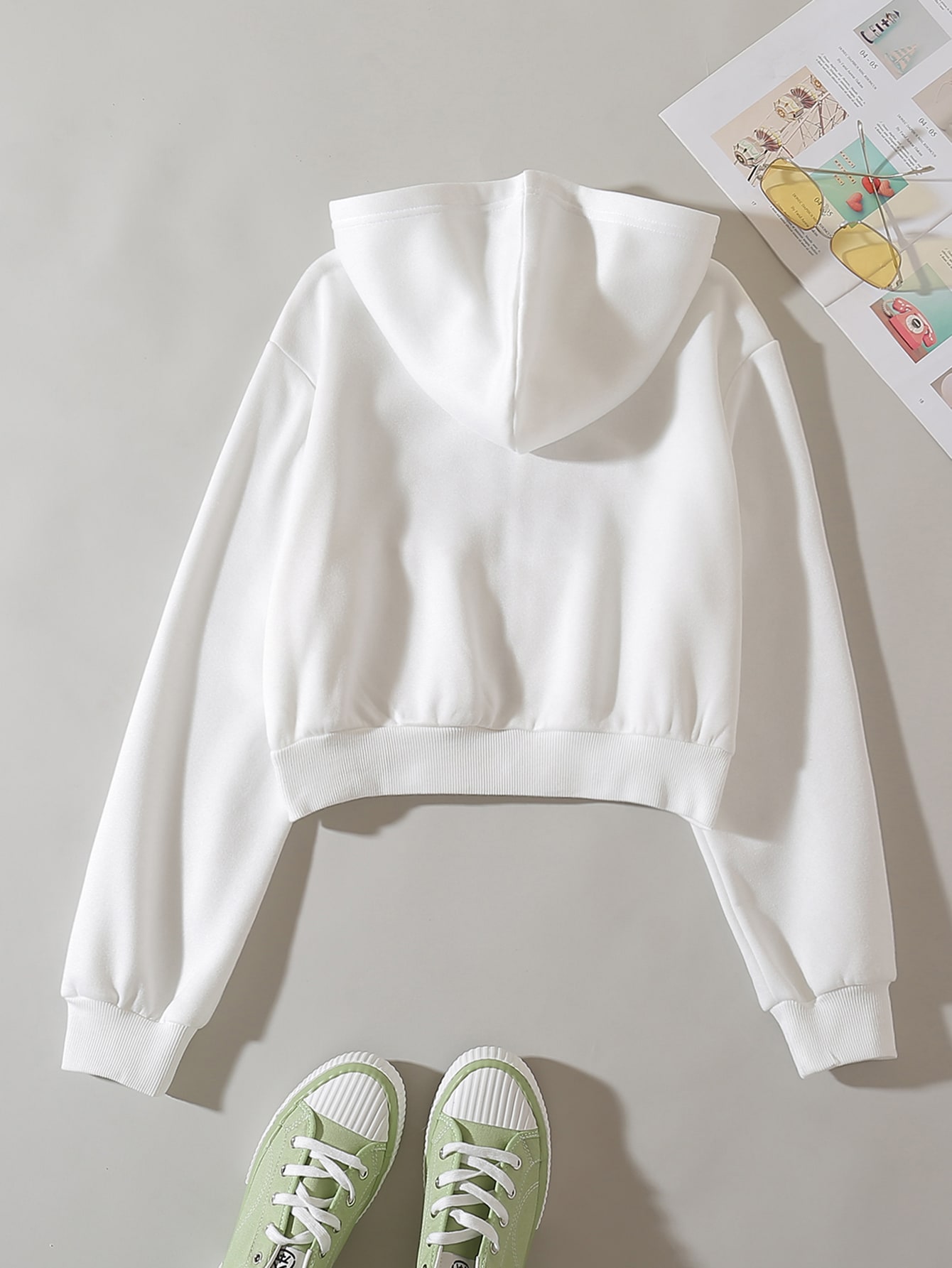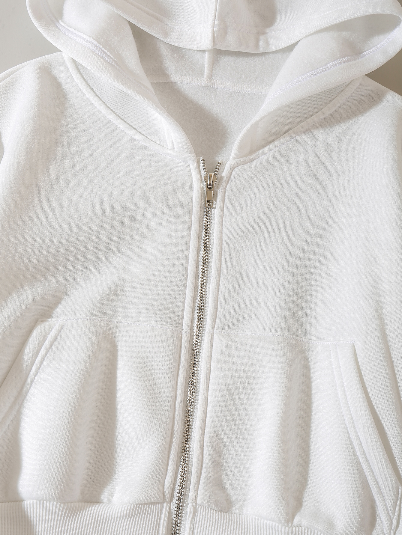 Solid Zip Up Drop Shoulder Thermal Lined Crop Hoodie