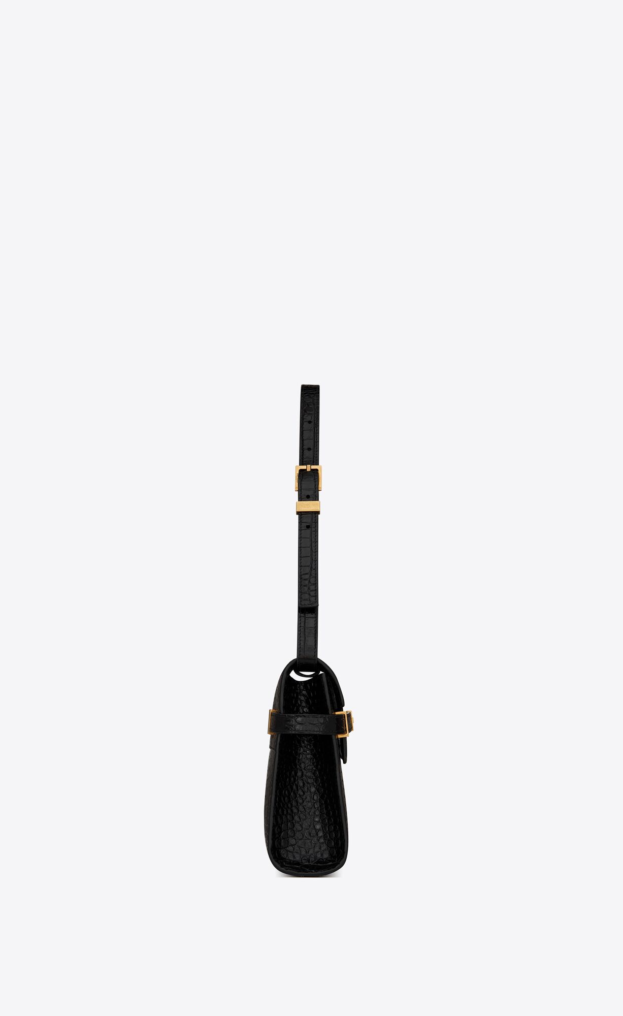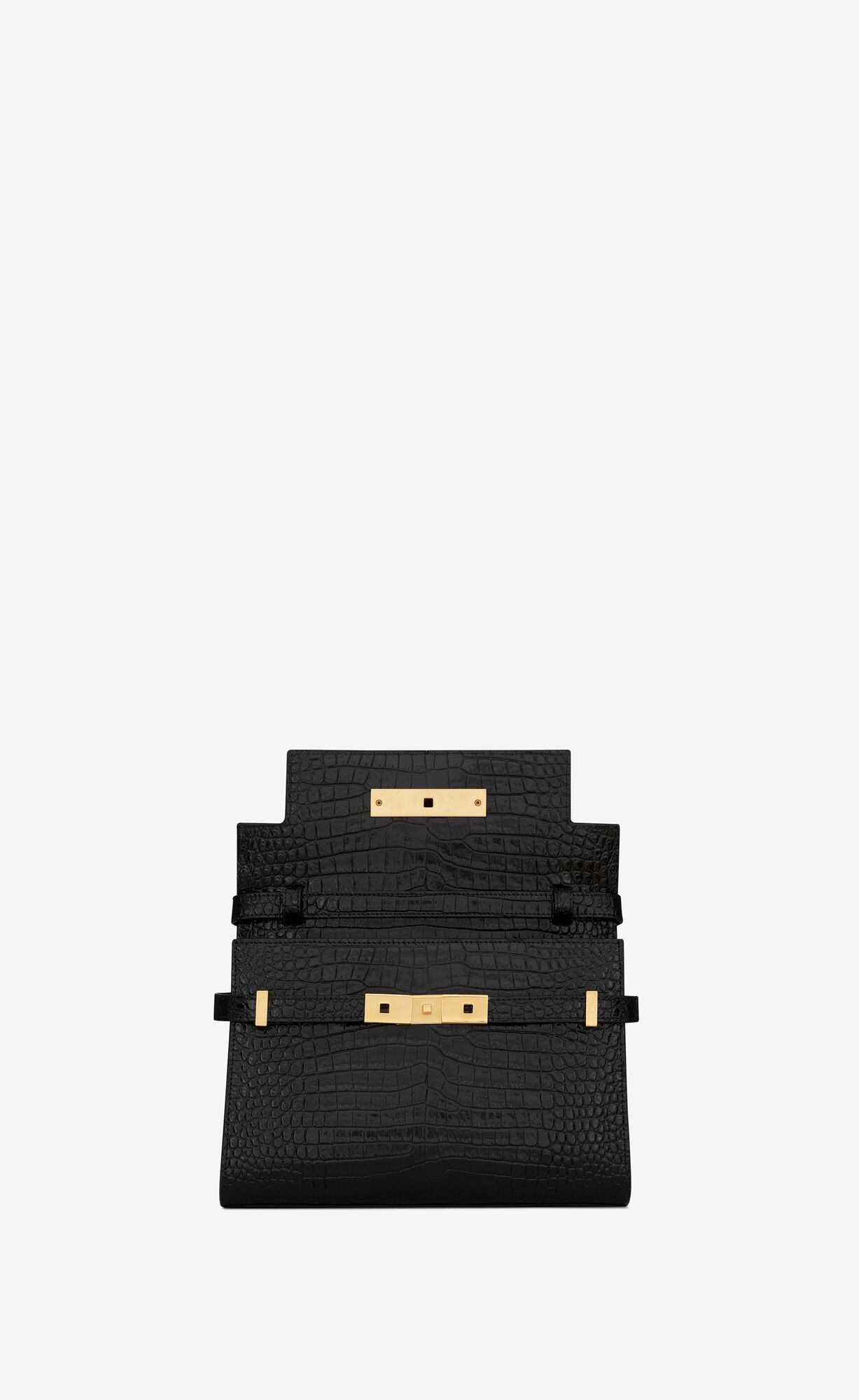 MANHATTAN SMALL SHOULDER BAG IN SHINY CROCODILE-EMBOSSED LEATHER-BLACK