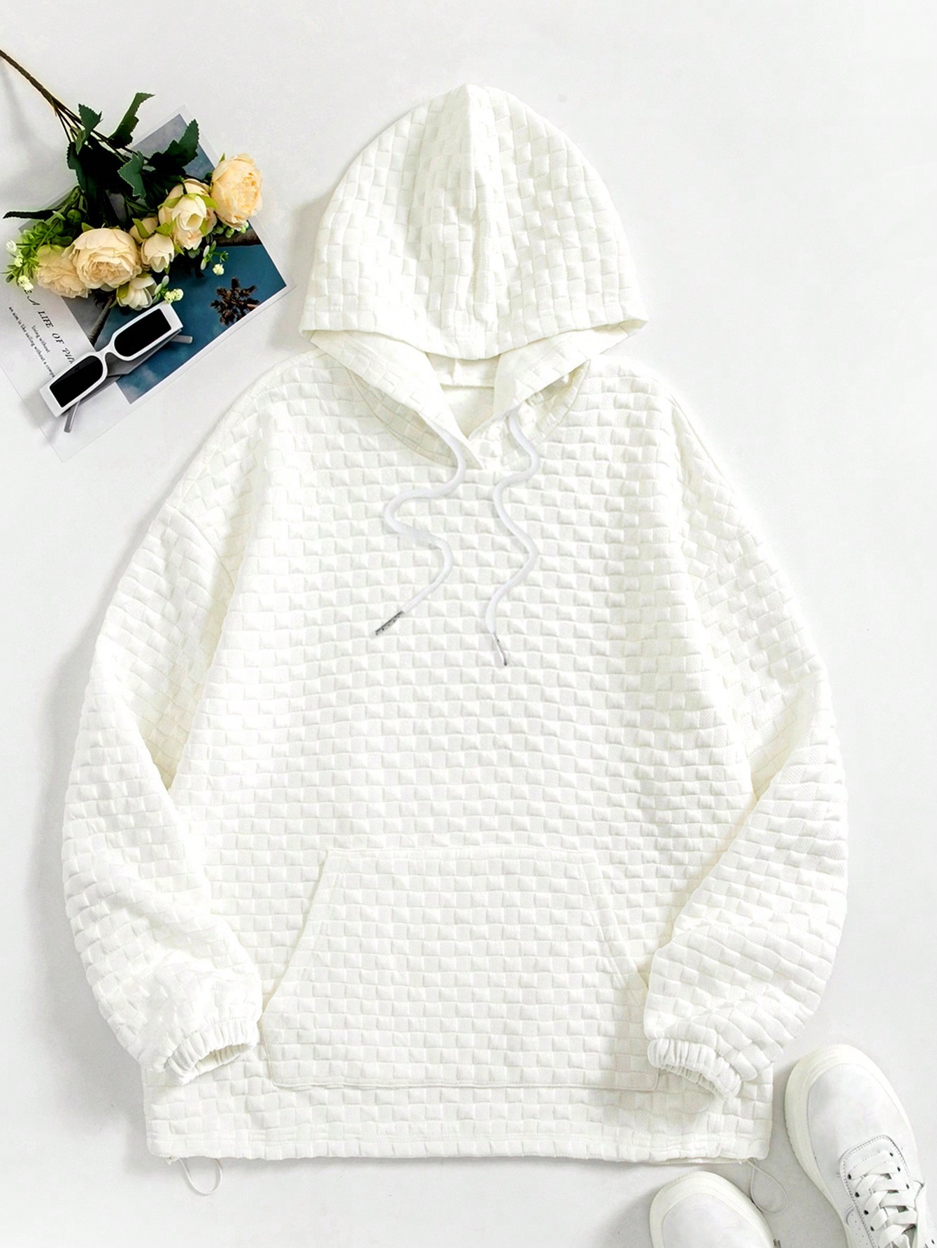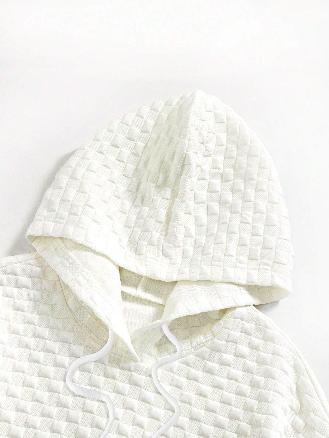 Pocket Drawstring Textured Hoodie