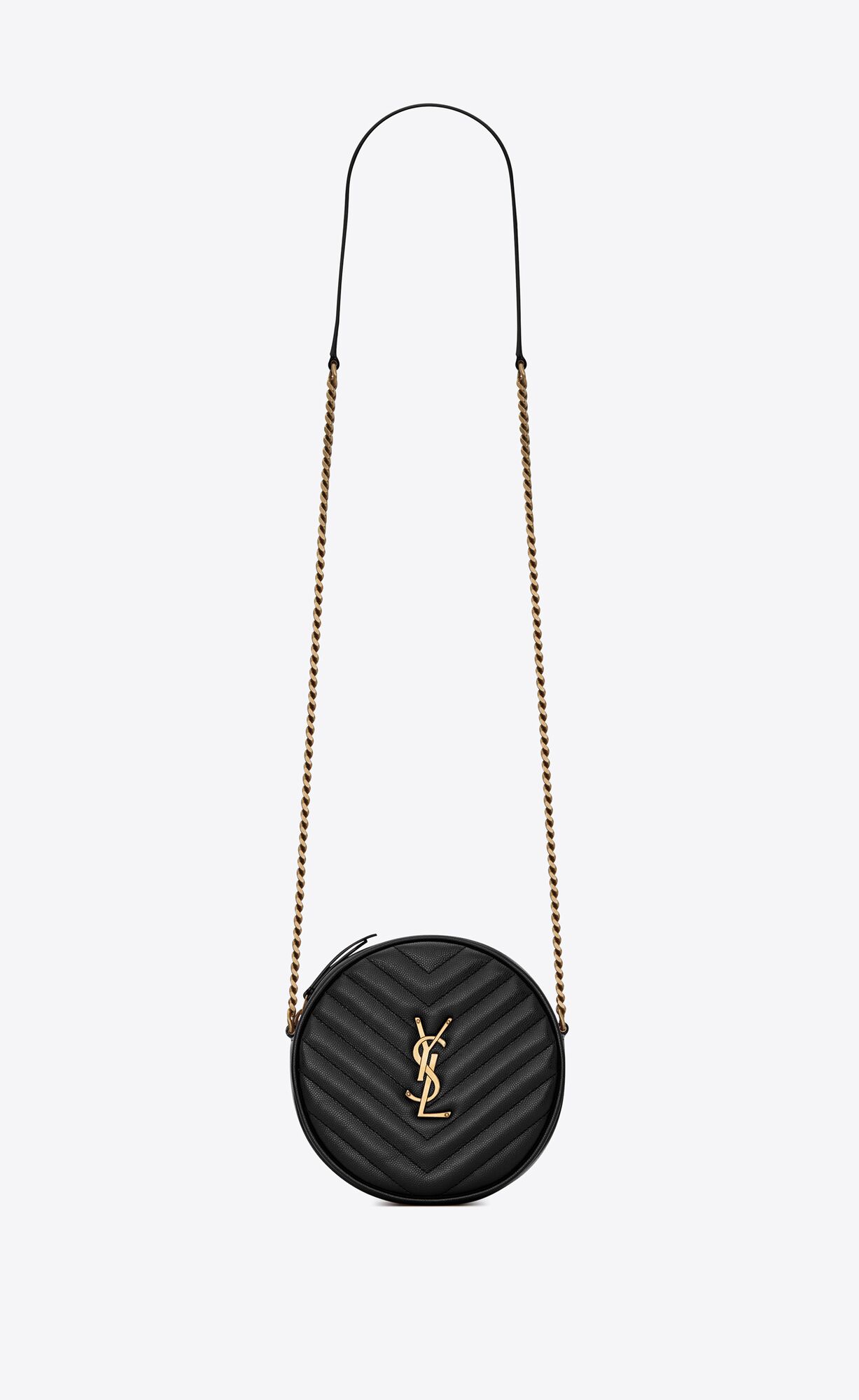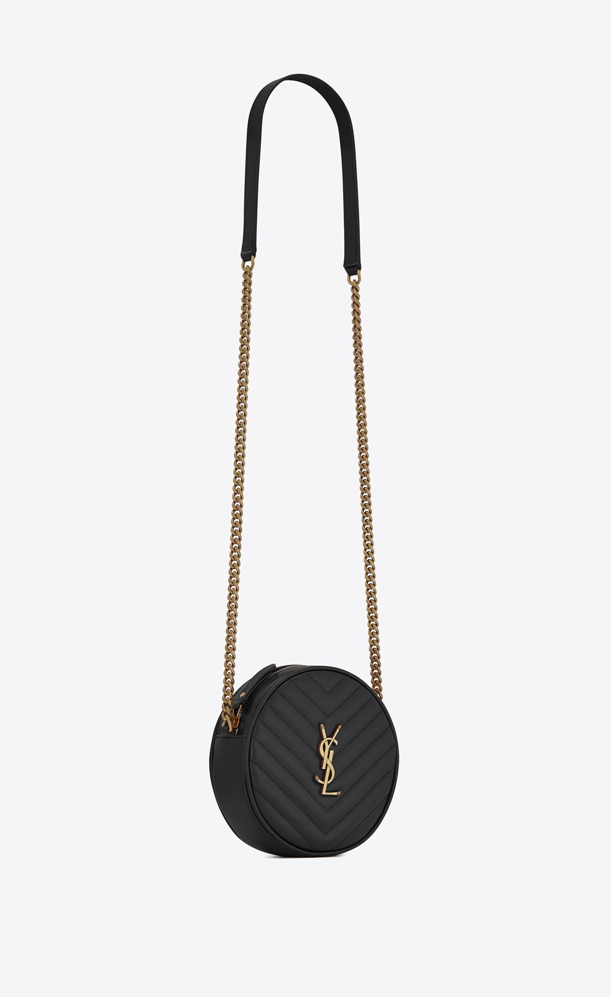 VINYLE ROUND CAMERA BAG IN CHEVRON-BLACK