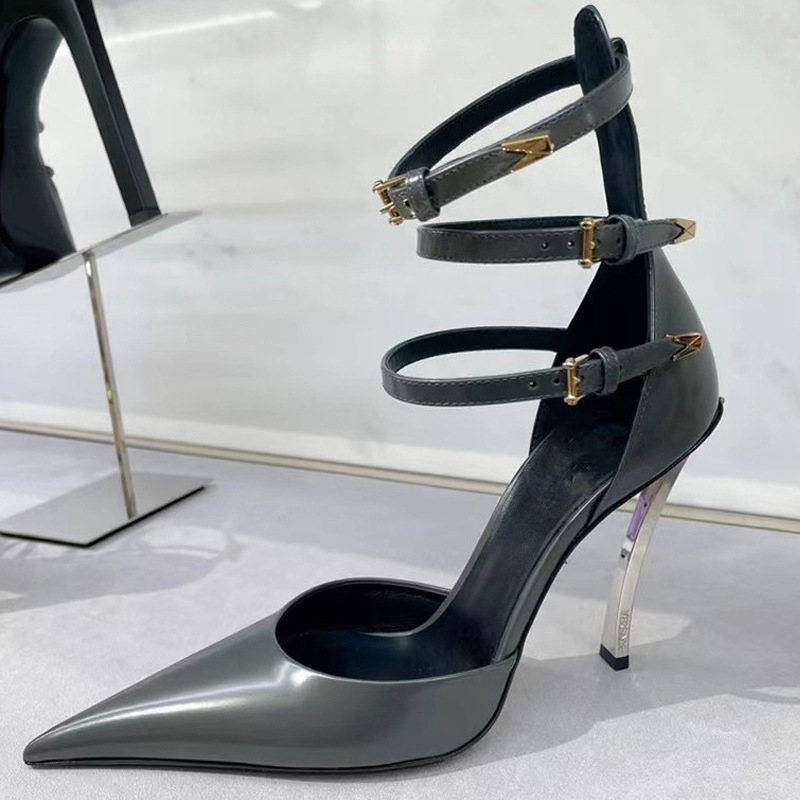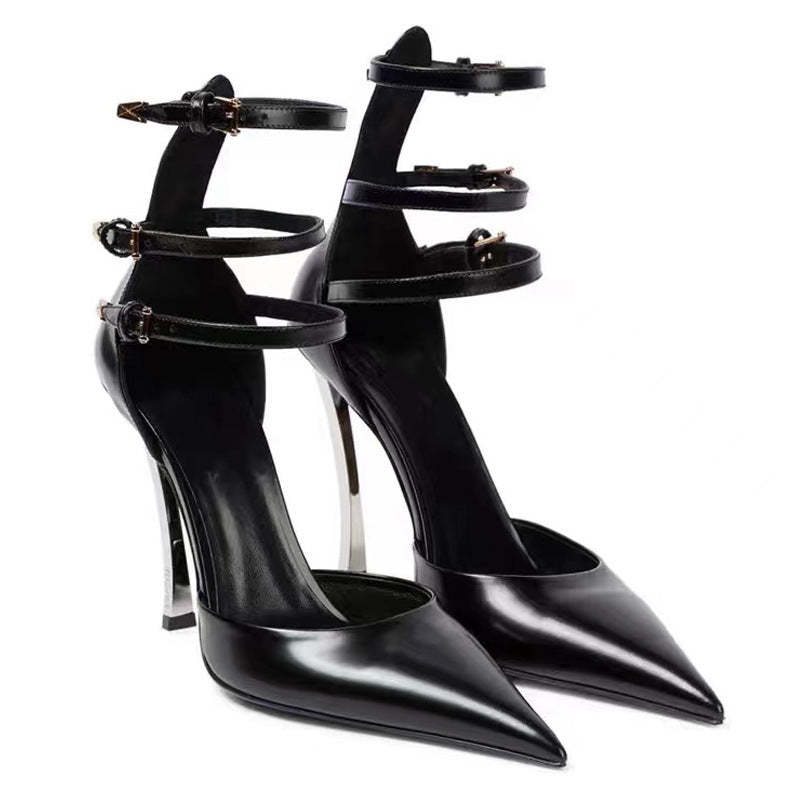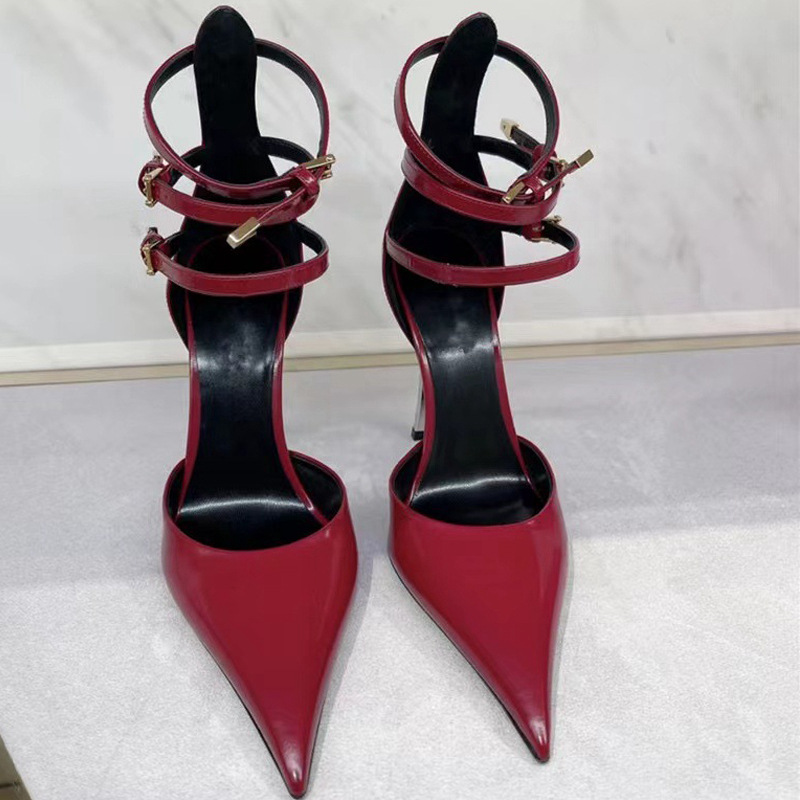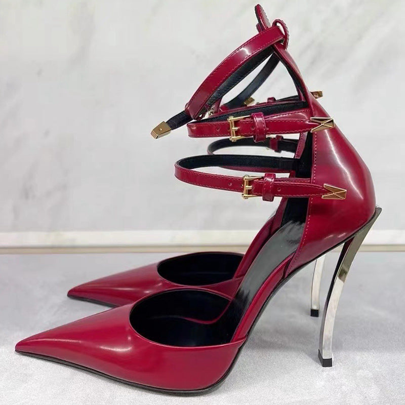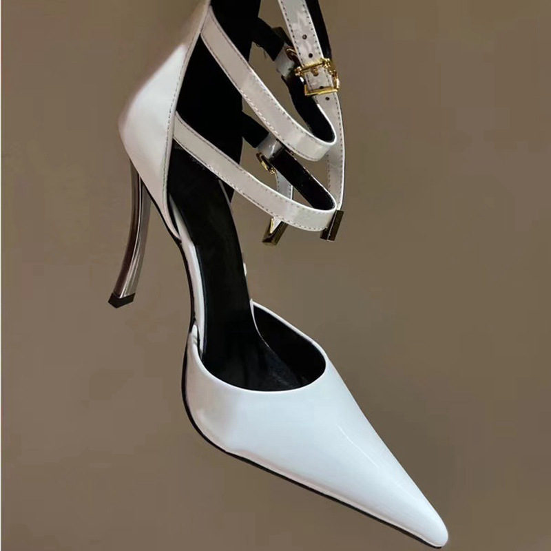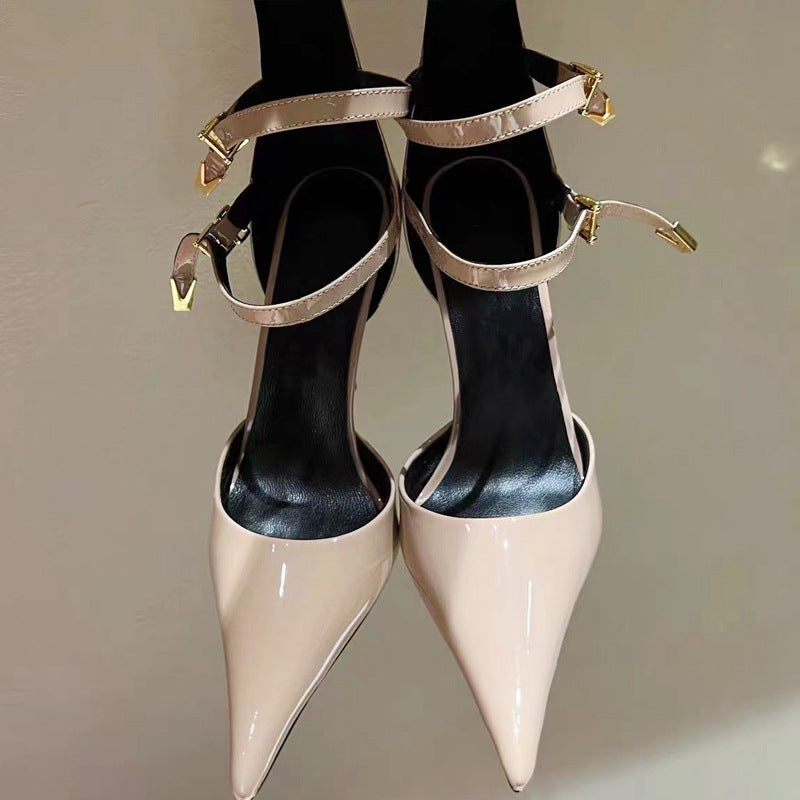 Women's Fashion Pointed Patent Leather Shallow Mouth Fine High Heel Sandals