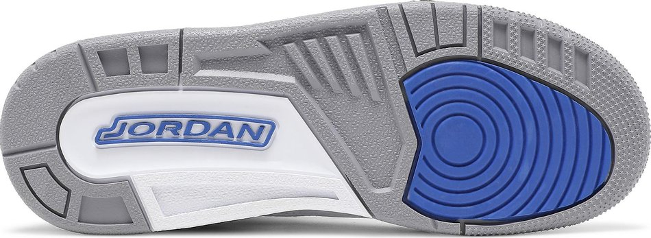 Offered in big kid sizing . the 3 Retro GS ‘Racer Blue is dressed in classic color blocking reminiscent of the OG ‘Fire Red colorway from 1988. Tumbled white leather is utilized on the upper . accented with dark grey elephant-print overlays at the toe and heel. Royal blue accents make their way to the sneaker’s molded eyelets . perforated leather collar and polyurethane midsole . enhanced with visible sole cushioning under the heel. The vibrant hue is repeated on Jumpman branding hits at the tongue and back heel.