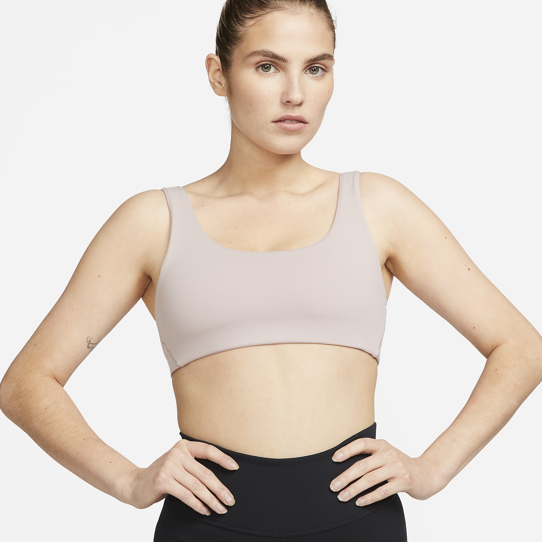 Feel effortless as you move through your day in this light-support U-neck bra. The lightweight, sewn-in spacer lining feels breathable while still giving you a little coverage. Moisture-wicking fabric and a low-profile silhouette help keep you cool as you check everything off your list.