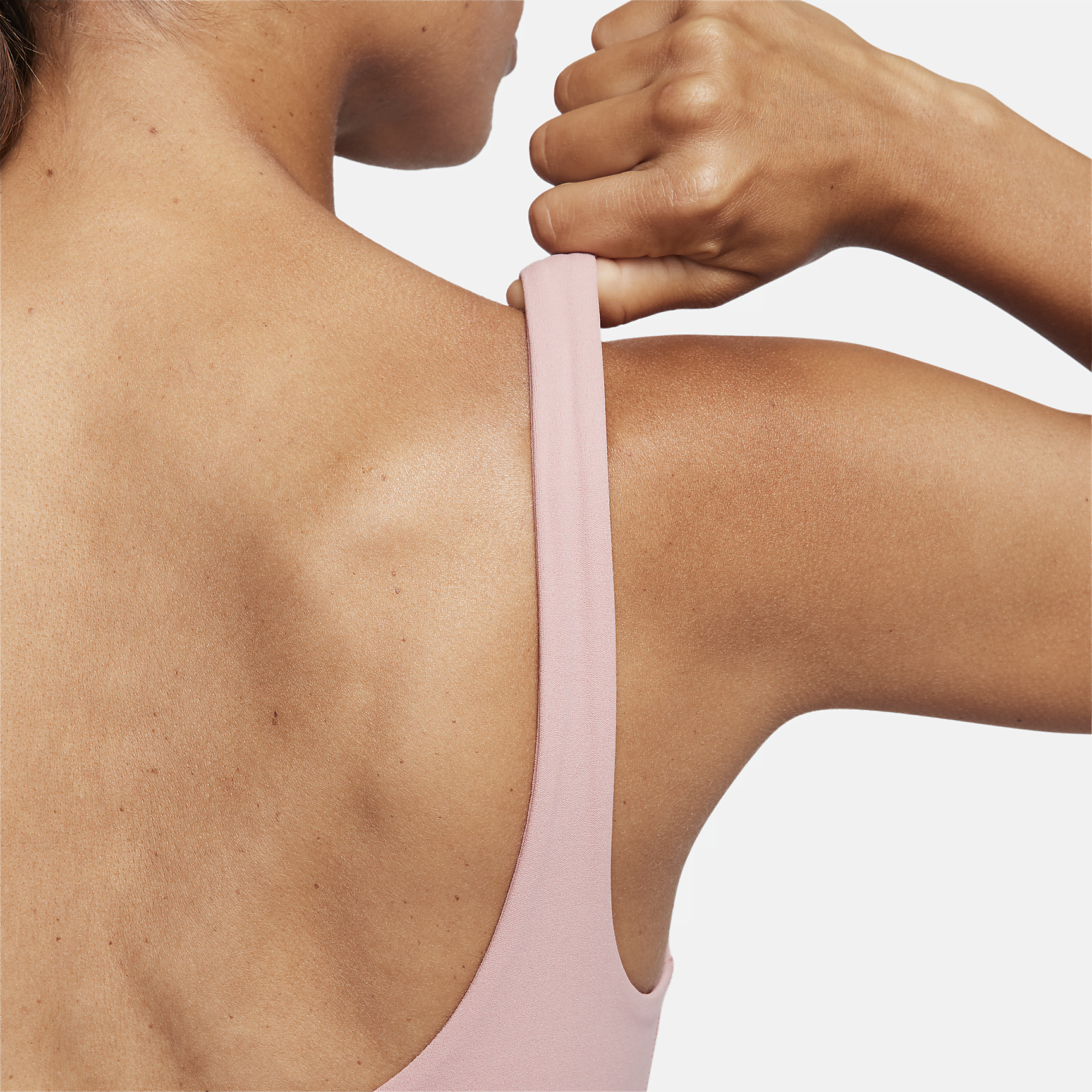 Take on your day with confidence in this sweat-wicking, scoop-neck bra. A longline silhouette offers enhanced coverage while the unpadded design with just 2 layers of material feels like a second skin. The InfinaSoft fabric of the body and straps feels like you’re being hugged by a silky cloud and stretches easily, giving you the ultimate freedom of movement. You might just forget you're wearing a bra at all.